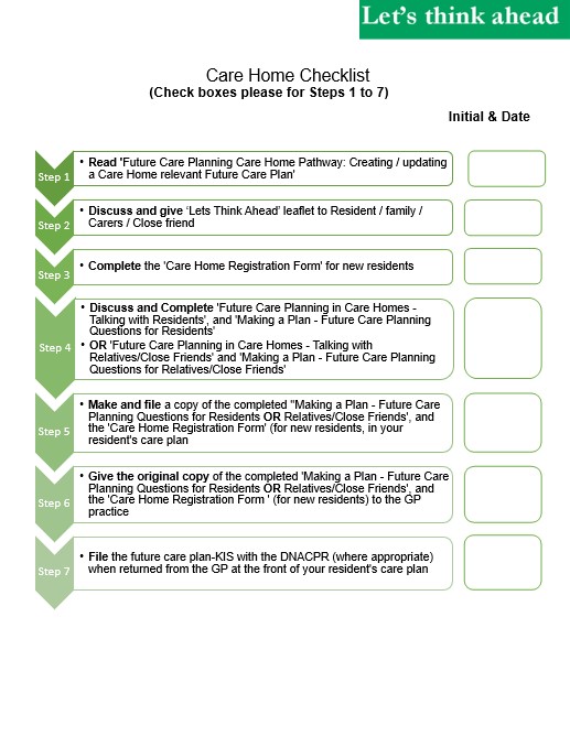 7 steps to future care planning in care homes checklist