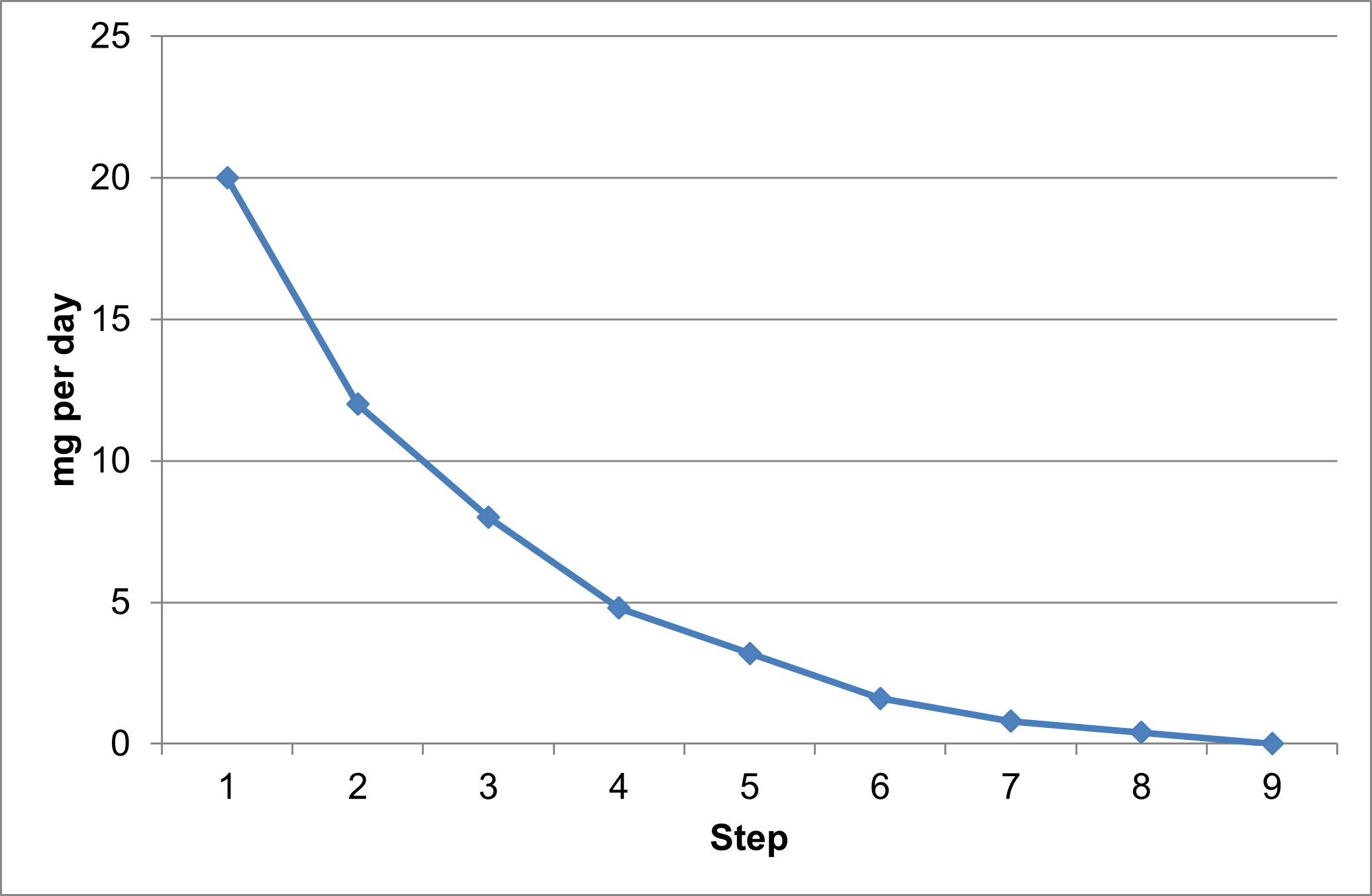 | Step | mg/d | ml/d |