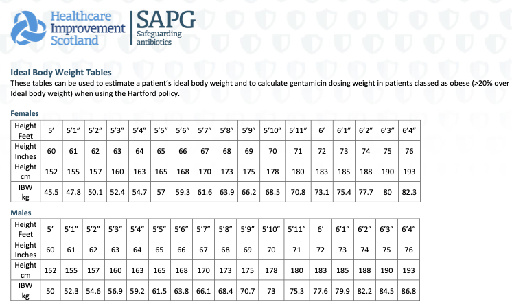 *Use actual or Maximum Body weight, whichever is the lower