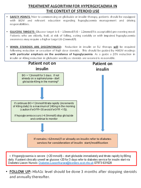 Click for fullsize treatment Algorithm (Treatment Algorithm for hyperglycaemia in the context of steroid use)