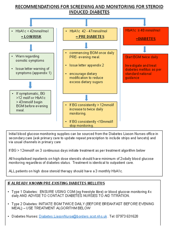Click for full size flowchart (Recommnedations for screening and monitoring for steroid induced diabetes)