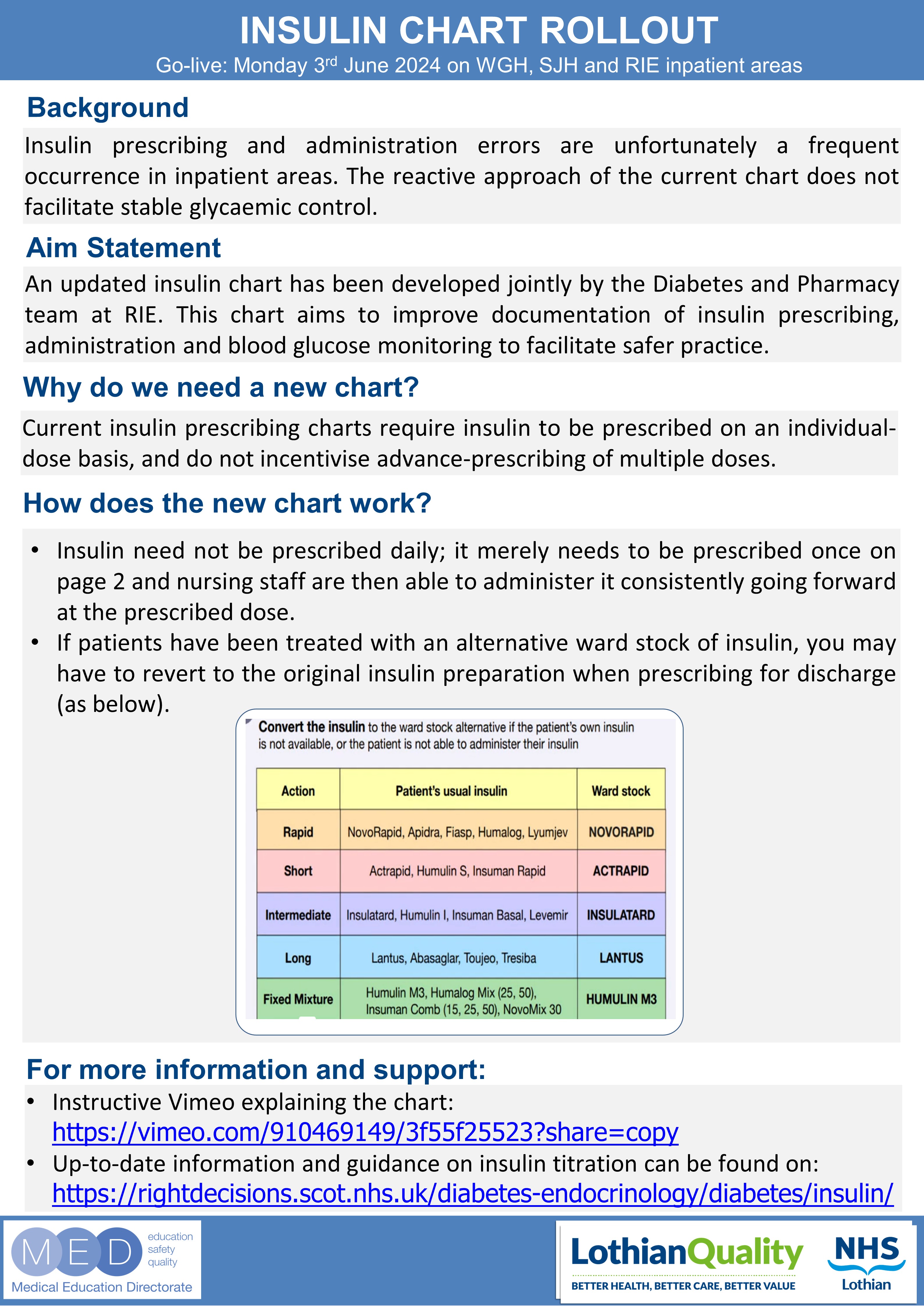 We will be rolling out the new NHS Lothian Insulin prescription chart on Monday 3rd June 2024.