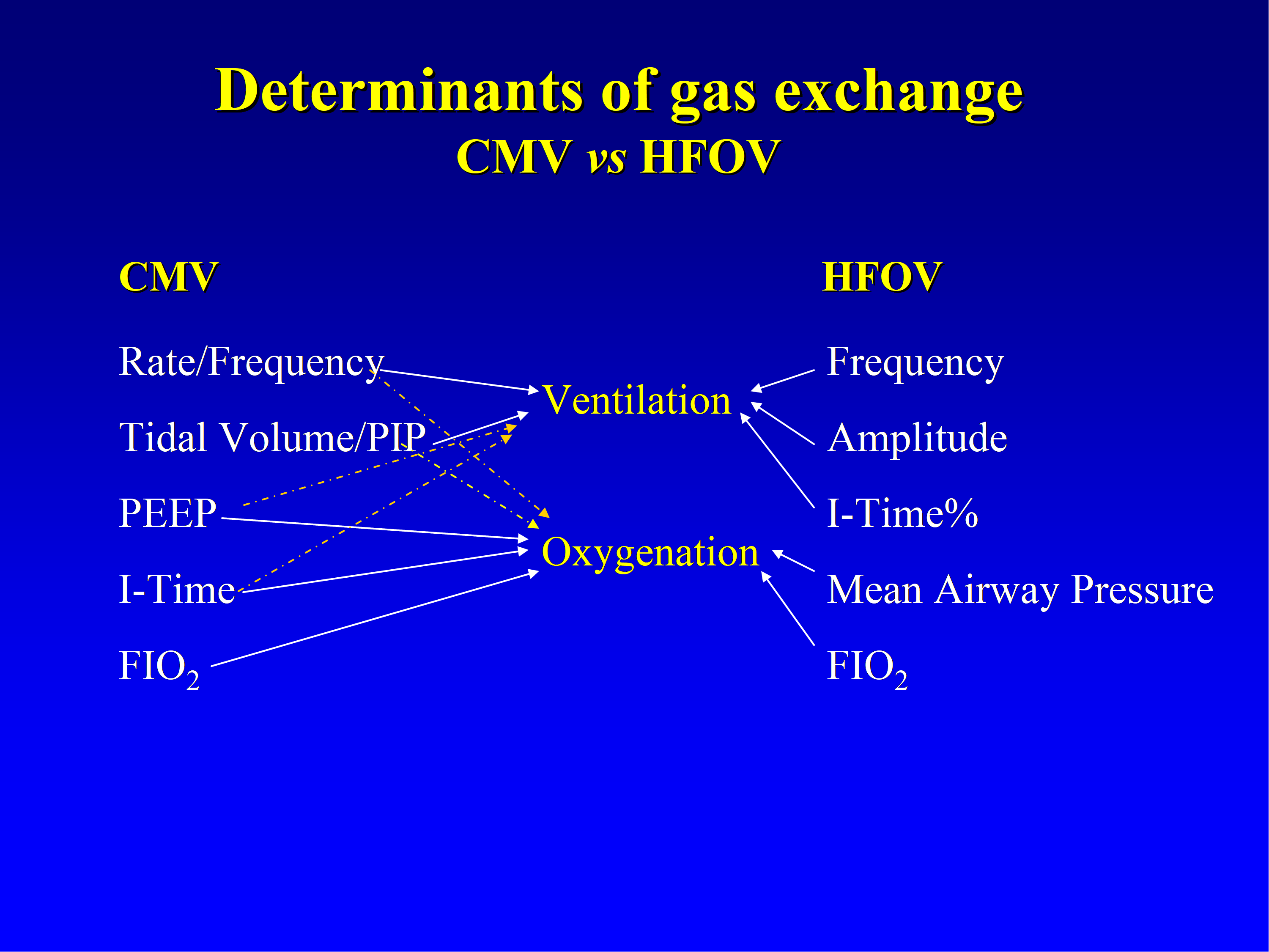 Figure 4: Ventilation parameters and effect on oxygenation and ventilation in HFOV and conventional ventilation (CMV)