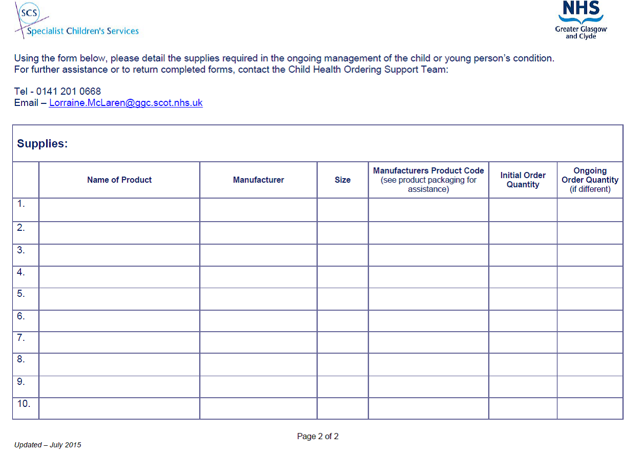 Appendix 4: Child Health Ordering Form