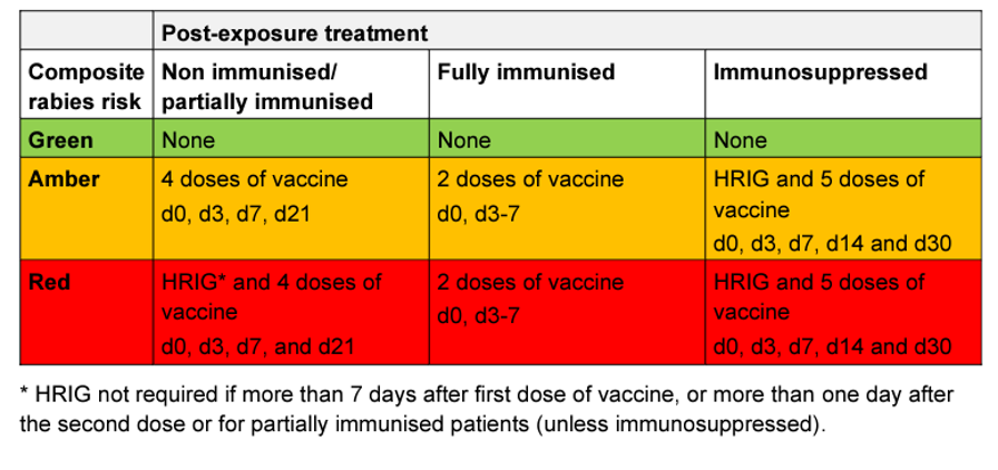 - a well documented pre-exposure or post-exposure course of rabies immunisations