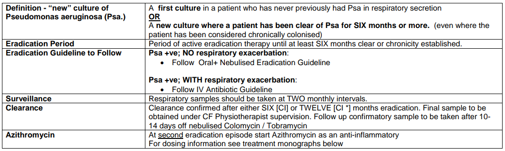 Recommendation: When P. aeruginosa grows from respiratory culture for the first time (or where there is growth in a patient that has been clear of the organism for 6 months or more) eradication should be attempted.2