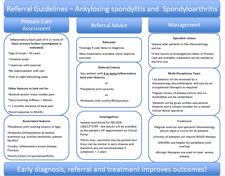 - See GGC ankylosing spondylitis and spondyloarthritis referral guidance below