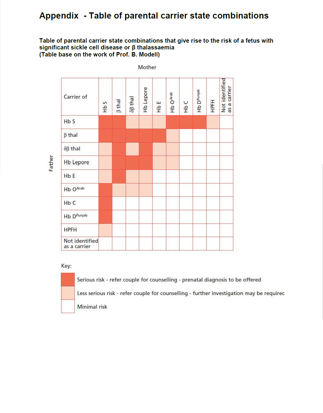 See Appendix: Pregnancy Screening Pathway for Sickle Cell and Thalassaemia