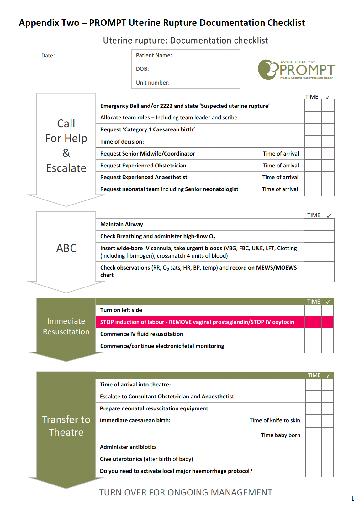 - Incidental rupture following vaginal birth should be discussed with consultant and managed in accordance with the risk of bleeding and laparotomy
