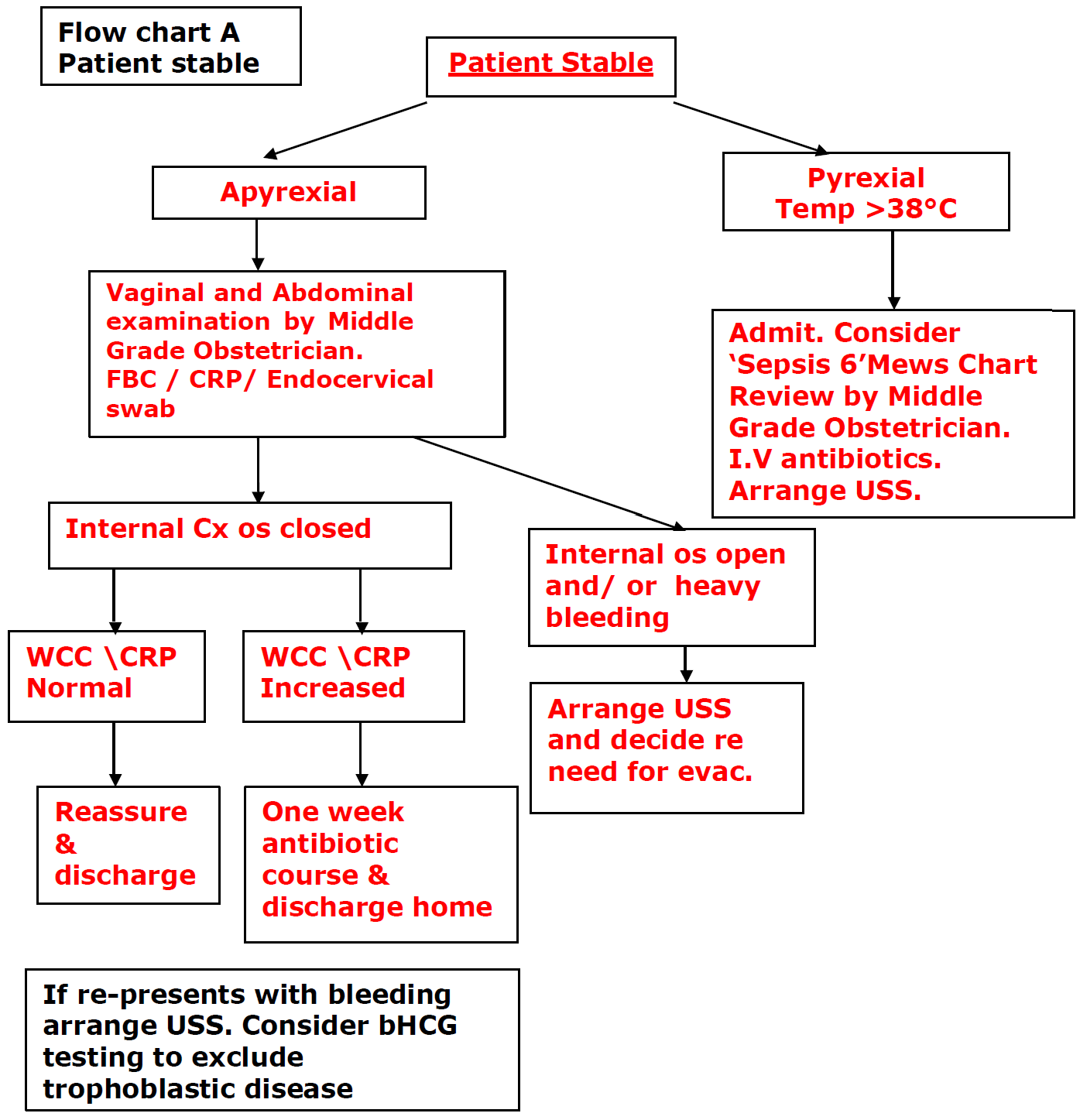- Follow either Flow chart A (stable patient) or Flow chart B (patient clinically unwell).