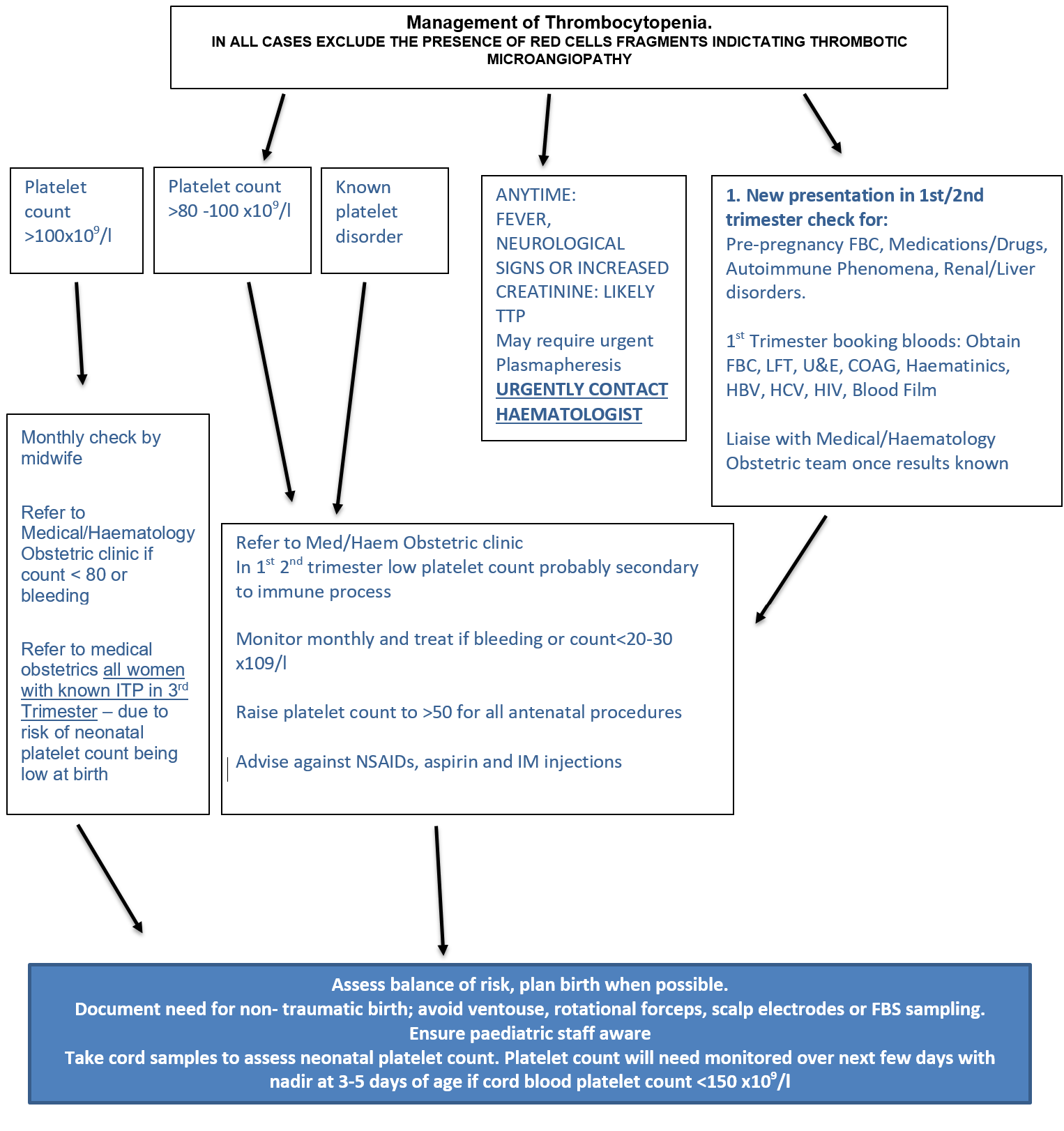 Below are recommendations for the management of ITP during pregnancy, but a haematologist should always be consulted in such cases.