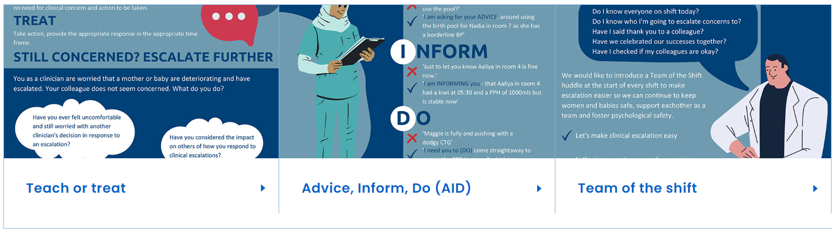 Whether the situation allows time for full discussion, or the patient needs time critical care will influence the response taken. In every situation the health professionals involved should be empowered to speak up about any concerns they have.