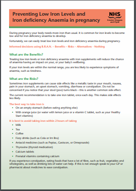 This early intervention, to treat low iron stores, complements the existing Prevention and management of iron deficiency during pregnancy and the puerperium GGC Guideline.