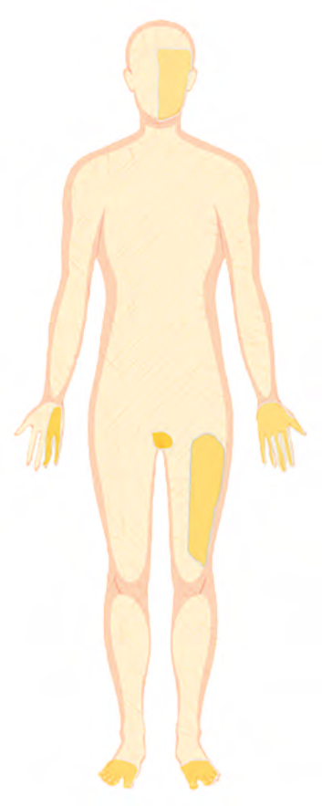 Paraesthesia (a burning or prickling sensation) due to peripheral neuropathy is usually persistent (although variable) and if related to Multiple Sclerosis (MS) tends to worsen over a few days and plateau for several weeks before improving. If related to MS, it will also rarely be in the distributions shown in the diagram and described in the more detailed descriptions below.