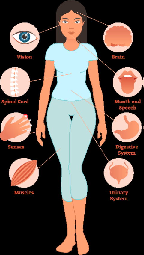 MS is an inflammatory disease affecting the central nervous system (i.e. brain and spinal cord) and is the most common non-traumatic disabling condition. The cause remains unknown, but a number of associations are known, including: female sex (3:1); cigarette smoking; genetic influences; previous Epstein Barr infection; low vitamin D levels.
