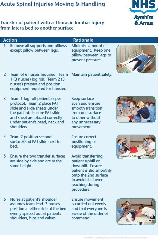Transfer of patient with a thoracic-lumbar injury from Latera bed to another surface
