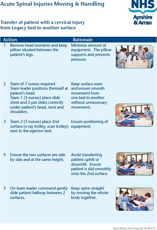 Transfer of patient with a cervical injury from Legacy bed to another surface