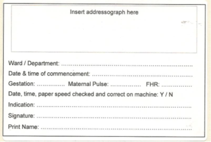 The Intrapartum Risk Assessment on Badgernet indicates the appropriate method of fetal monitoring. Complete a CTG label upon commencement of the CTG.