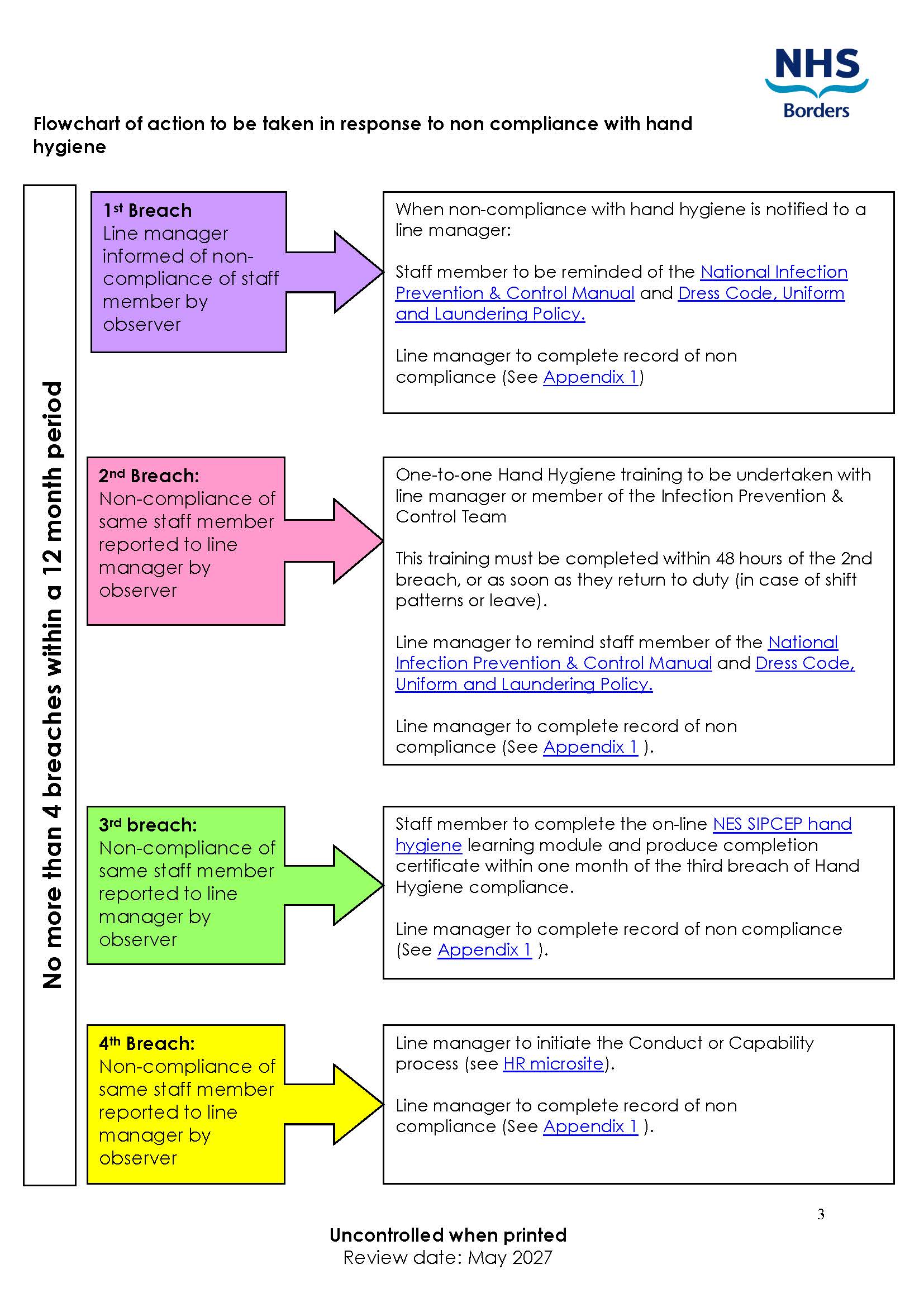 If it can be demonstrated that an individual repeatedly fails to comply with NHS Board policies, they could be found in breach of contract and as such, could be subject to a conduct or capability process.