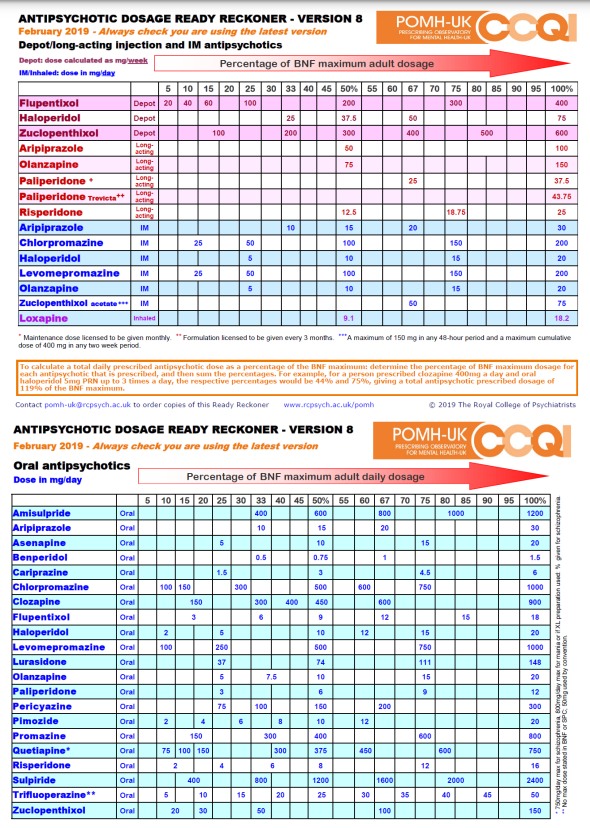 If a combination will result in exceeding 100% BNF maximum dose the High-dose antipsychotic policy should be adhered to.