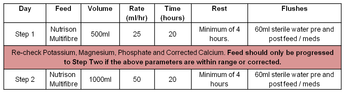 - Medical staff to check refeeding bloods (U&E’s phosphate and magnesium) before commencing NG starter regimen