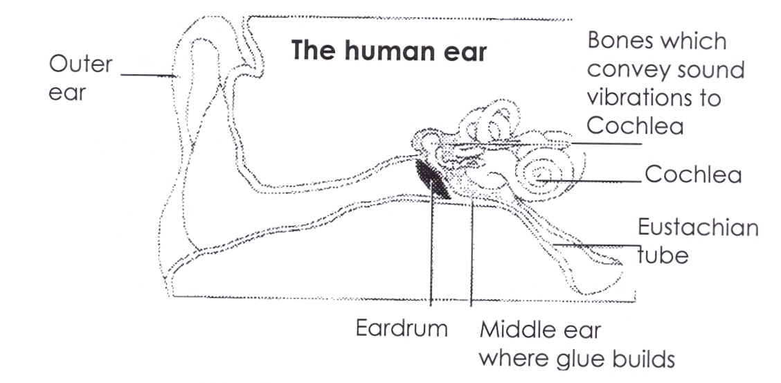 As well as the visible, outer parts, each ear has middle and inner parts. Glue ear mainly affects the middle part. Each ear looks like this