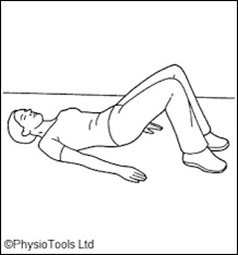 - Lying on your back on your bed or the floor, with knees bent and feet on the surface. Tighten your buttock muscles, and slowly lift your bottom up, and slowly lower back down.