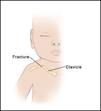 A fracture of the collar bone is a common birth injury. It is caused by pressure on that area during birth. Although it sounds serious, collar bone fractures usually heal very quickly, often with no need for treatment.