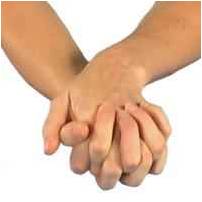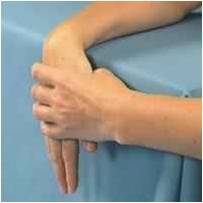 Clasp your hands together and support your forearms on a table. Put the back of one hand on the table and then turn your hands and put the back of the other hand on the table.