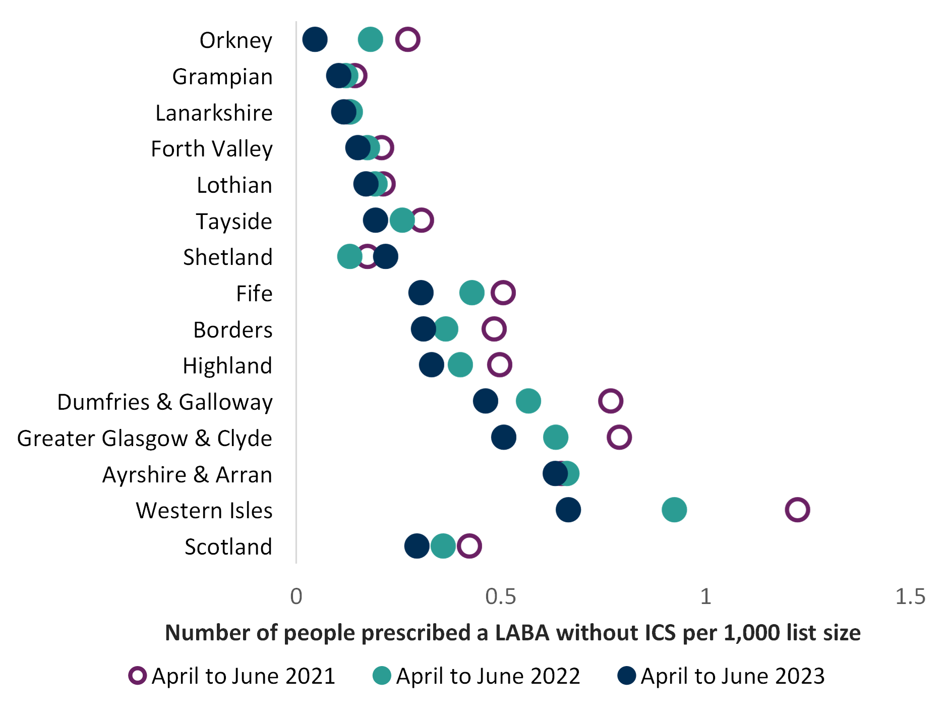 Number of people prescribed a LABA without ICS per 1000 patient list size