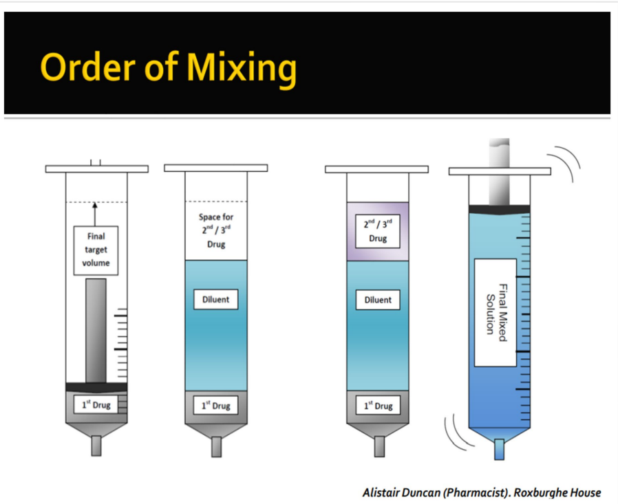 The size of syringe selected to prepare the medicine(s) will depend on the volume of the medicines prescribed including diluent. The total volume generated will determine the size of the syringe.