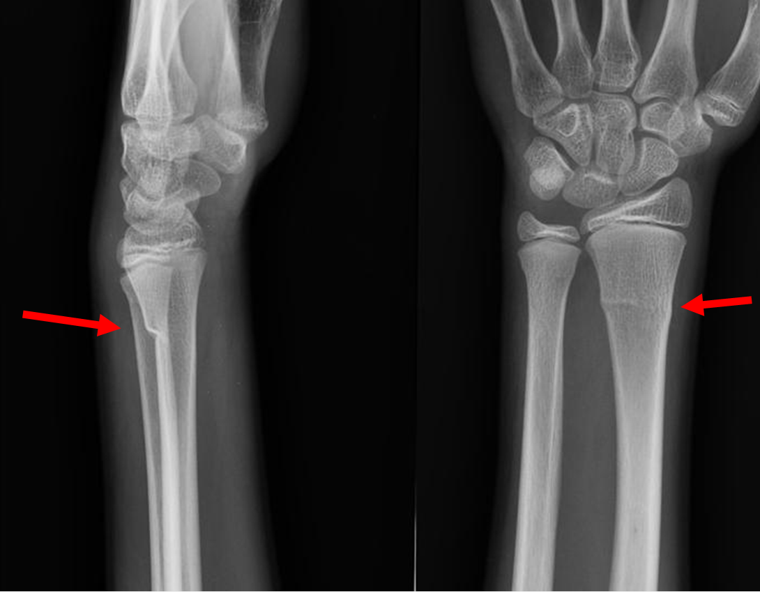 Buckle fractures are common injuries sustained by children >2 years old2, typically following a fall on the outstretched hand.