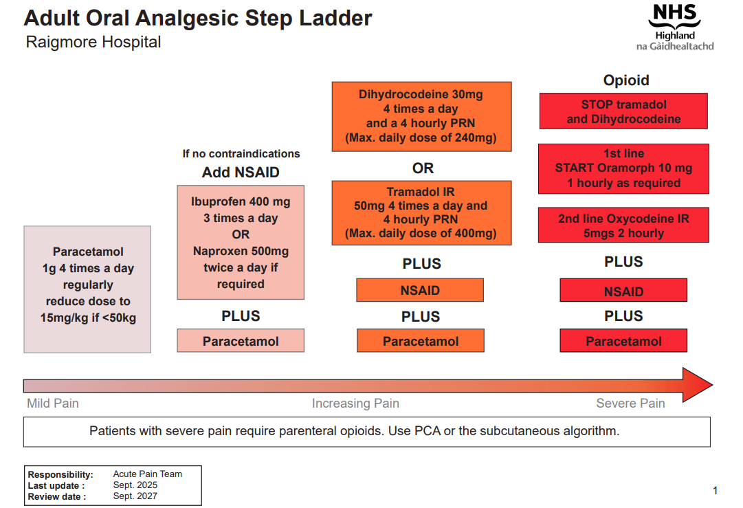 - If you need to change opioids seek advice from Acute Pain Team and/or see Opioid Conversion Chart in the BNF or Palliative Care Formulary.