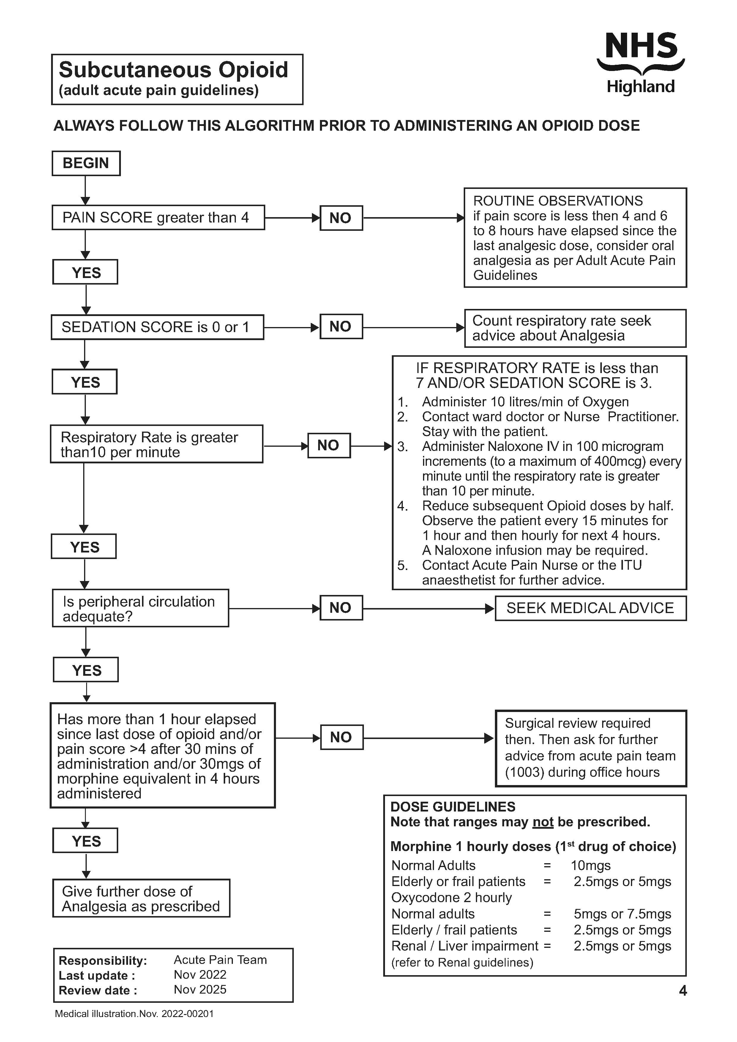 - Contact the Acute Pain Nurse or Intensive Care Unit (ITU) Anaesthetist to reassess analgesic requirements and whether a Naloxone infusion is required.