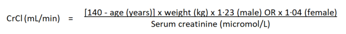 DO NOT use eGFR. Calculate the creatinine clearance (CrCl) using the following equation (Cockcroft Gault)