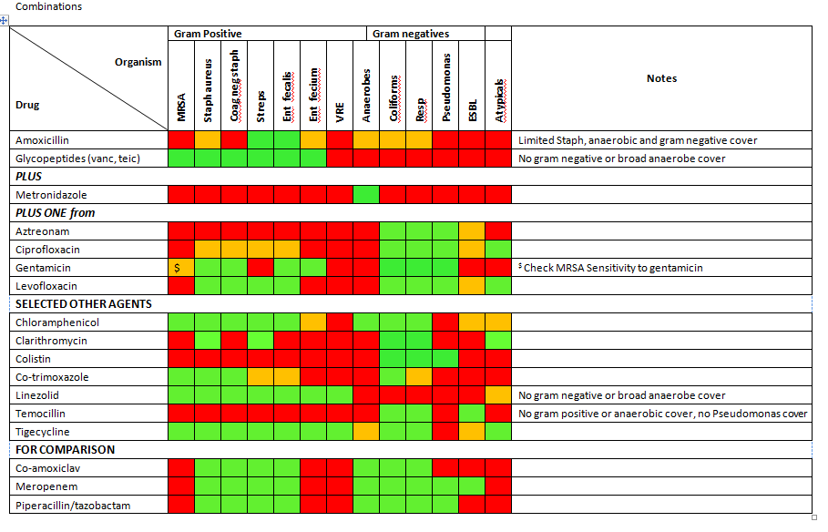 | Intra-abdominal sepsis | Aztreonam 2g every 8 hours (as NHS Tayside), can increase to 6 hourly dosing if required PLUS amoxicillin 1g x 3 PLUS metronidazole 500mg x 3 Penicillin allergy: aztreonam 2g every 8 hours (as NHS Tayside), can increase to 6 hourly dosing if required PLUS vancomycin PLUS metronidazole 500mg x 3 |