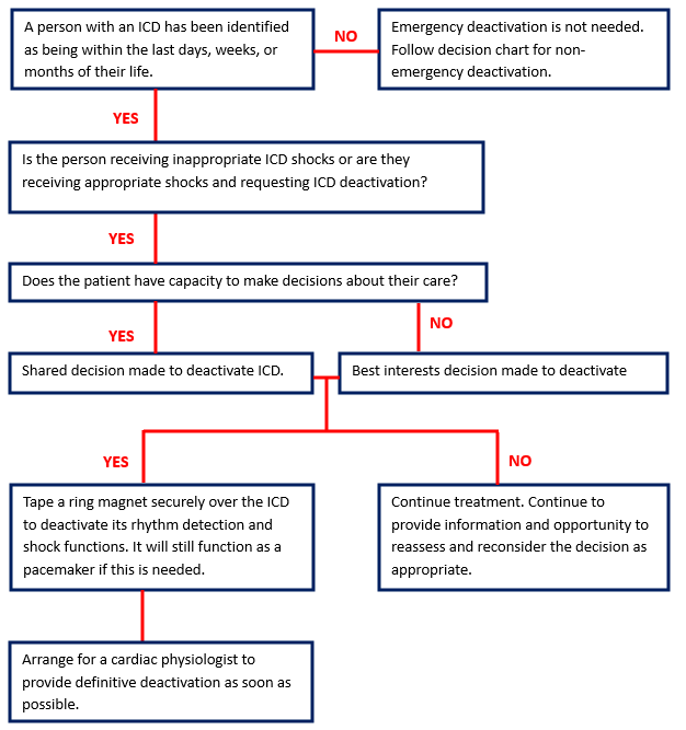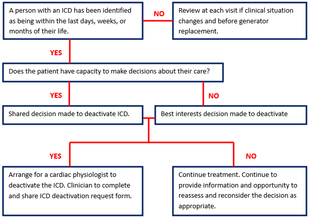 - Therefore, to ensure the person receives high-quality end-of-life care, they should have the opportunity to consider and discuss the option to deactivate the shock function of their ICD.