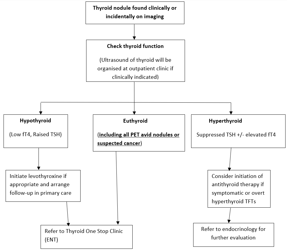 Dose: The initial dose can range from 5 to 40mg daily depending on the degree of hyperthyroidism, with repeat thyroid function usually after 4 weeks. The dose may then be progressively reduced to the lowest dose to maintain thyroid function within range. If unclear which dose to initiate, endocrinology can advise on receipt of referral, or seperately via Clinical Dialogue. Please note that propylthiouracil is the antithyroid drug of choice in the first trimester of pregnancy.