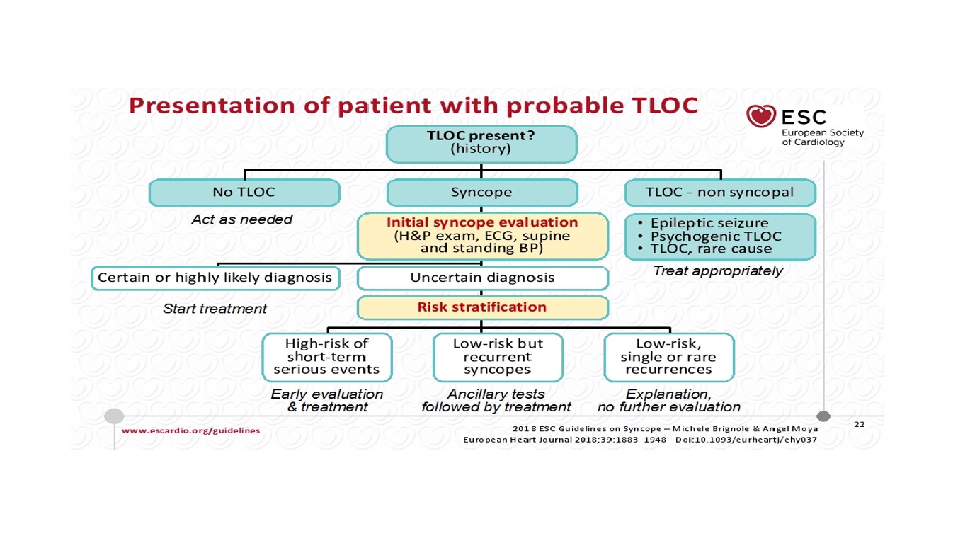 - Vasovagal syncope: is highly probable if syncope is precipitated by pain or fear or standing, and is associated with typical progressive prodrome ie pallor, sweating, nausea