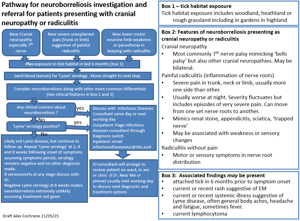 Discuss atypical rash with Dermatology or Scottish Microbiology Reference Laboratory, Lyme disease and tick-borne infections: nhs.SMIRL@nhs.scot, sending a photo of rash, if available.