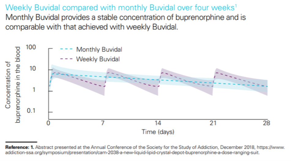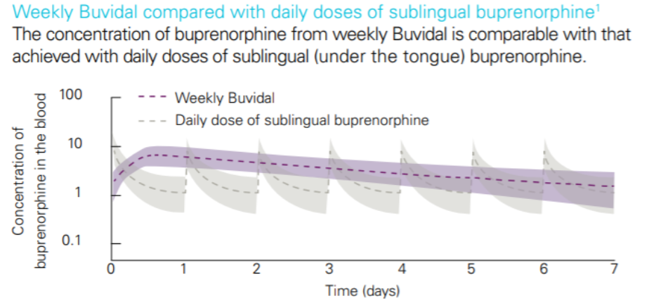 Graph 1 – Weekly Buvidal® compared with daily dose of sublingual buprenorphine