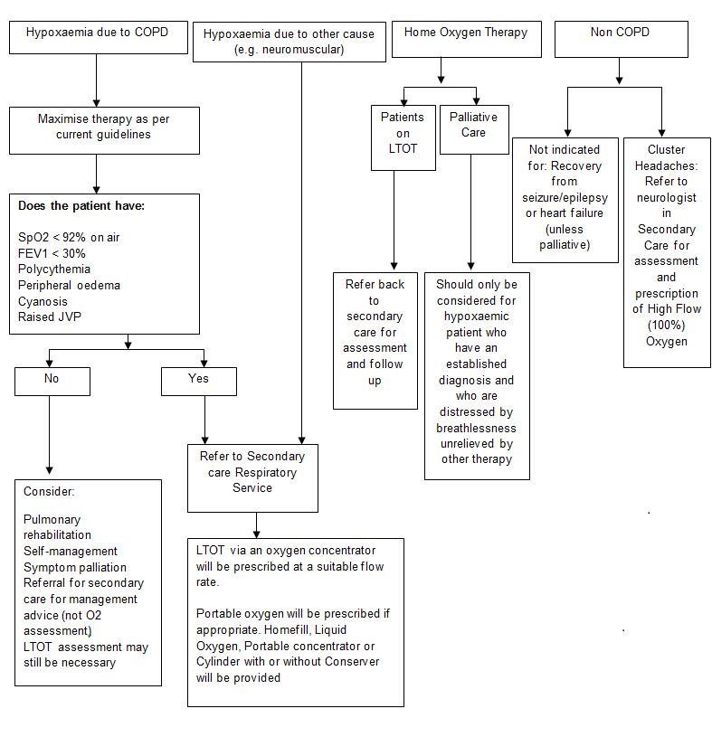 Only specific consultants (e.g. respiratory, palliative care, cardiology) will be authorised to prescribe home oxygen, any new patient believed to require home oxygen must be referred to the appropriate consultant for their assessment and the production of a Scottish Home Oxygen Order Form (SHOOF) for transmission to the provider Dolby Vivisol.