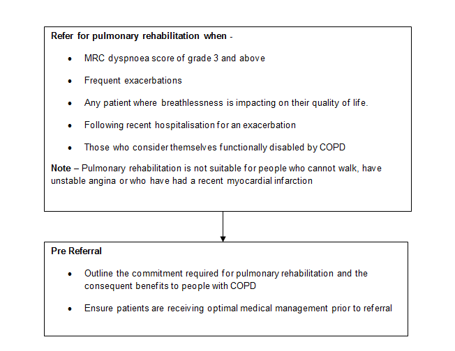 Individually tailored pulmonary rehabilitation programmes aim to stabilise or improve both the physical and mental wellbeing of the patient by attempting to return the patient to the highest possible level of functional capacity given their respiratory handicap and general medical status.