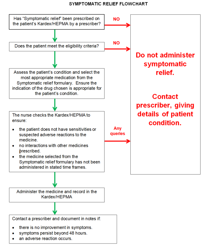 - Senior Charge Nurse for the inpatient area is in agreement that the Symptomatic Relief Formulary may be used.