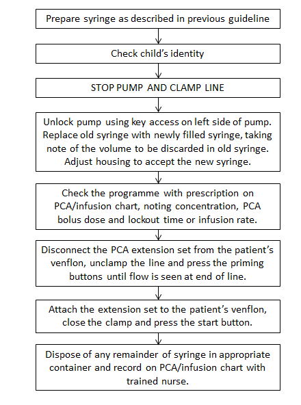 Each change of syringe must be witnessed by a trained nurse or doctor who has received PCA training.