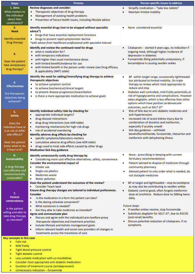 Ensure drug therapy changes are tailored to individual’s preferences. Consider
