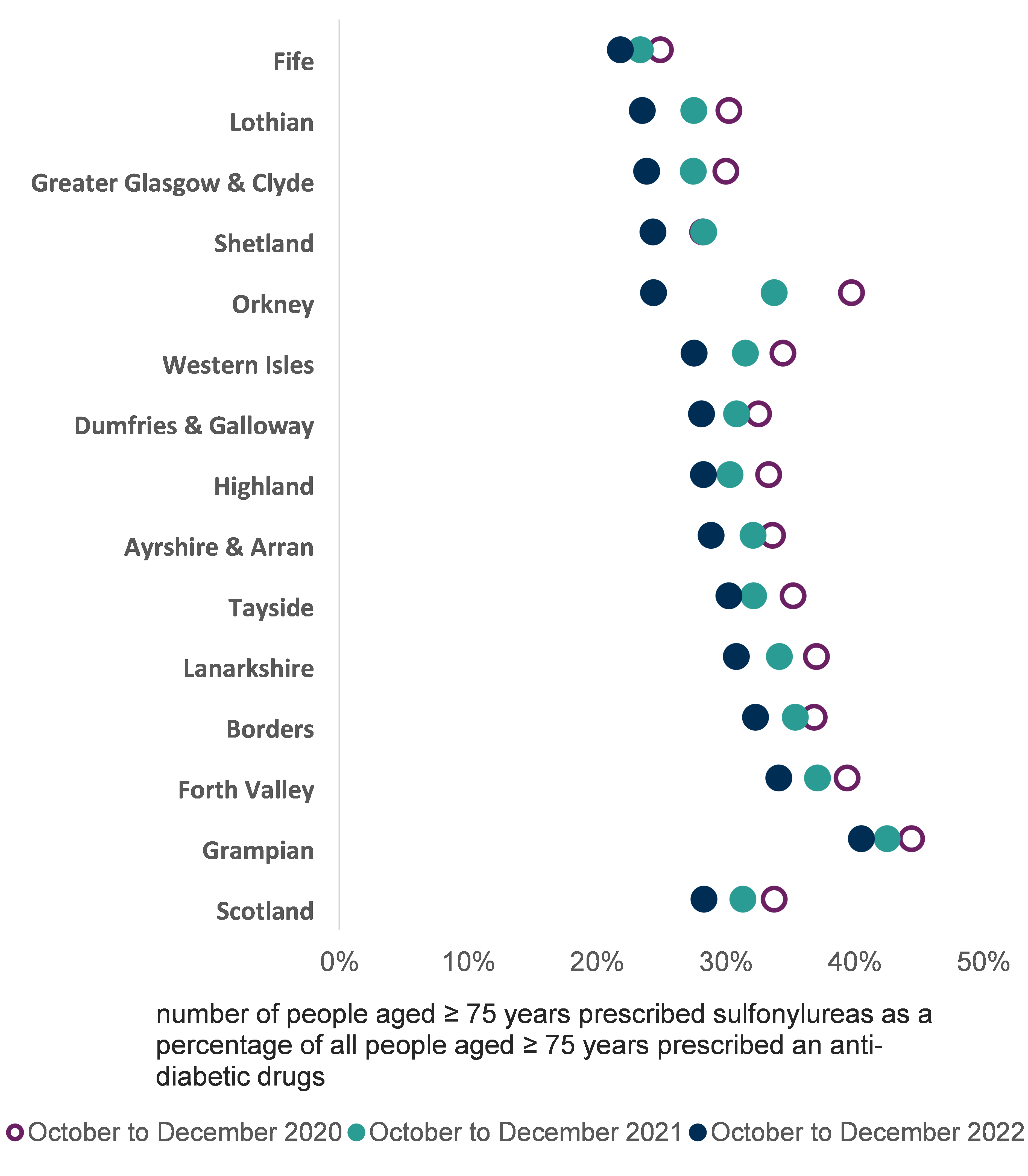 - Although this has reduced, most recent data shows that across Scotland there is a significant proportion of those aged 75 years or over still being prescribed an SU, increasing their risks of hypoglycaemia and subsequent falls and hospitalization.